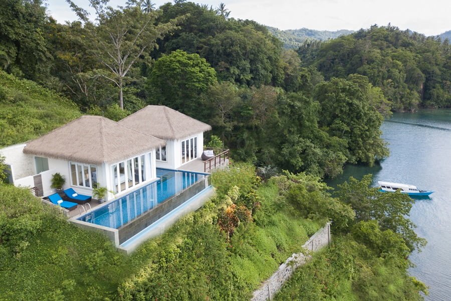 Das luxuriöse Resort befindet sich auf der Insel Siladen inmitten des Bunaken-Nationalparks. Es wurde auf einem grossen Grundstück mit eigenem Strandabschnitt errichtet und bietet einen schönen Blick auf den erloschenen Vulkan Manado Tua. Die wunderschön bewachsenen Steilwände und Riffe des Nationalparks bieten vielen Schildkröten ein Zuhause.