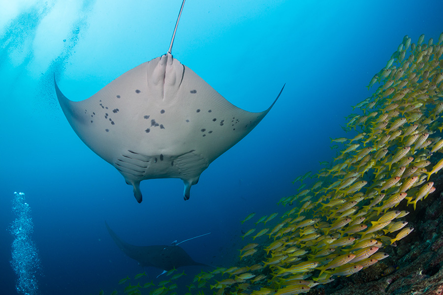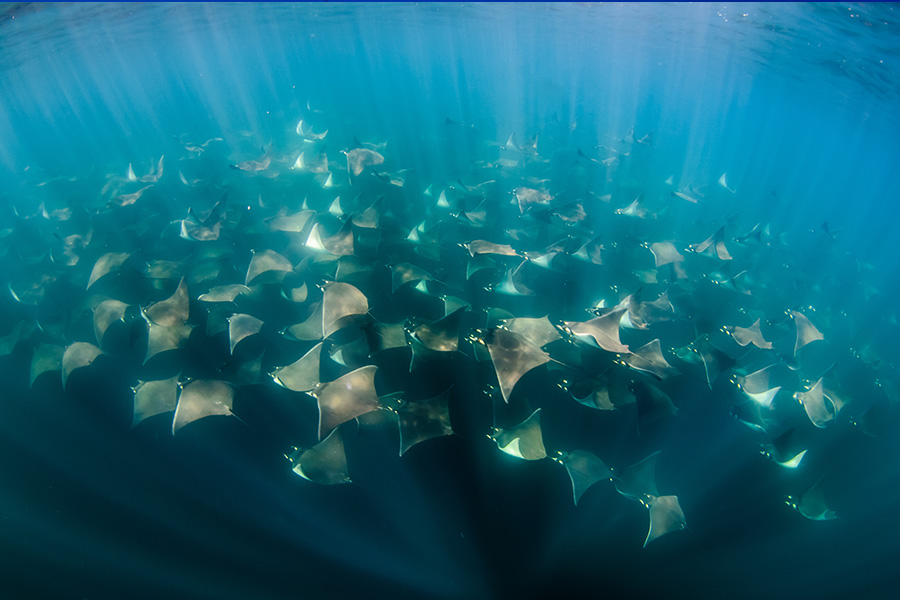 An speziellen Meeresregionen steigt nährstoffreiches Tiefenwasser an die Oberfläche – ein Phänomen, das als „Upwelling“ bezeichnet wird. Diese Nährstoffe bilden die Grundlage für enorme Planktonblüten, welche wiederum Schwärme von Fischen und schliesslich auch Grossfische anlocken. Orte wie Cocos Island, die Galapagos-Inseln, Socorro und Malpelo zählen zu den bekanntesten Upwelling-Hotspots weltweit. Hier erleben Taucher ein einzigartiges Zusammenspiel aus Strömungen, reichem Leben und der beeindruckenden Präsenz von Hammerhaien, Mantarochen und Walhaien.