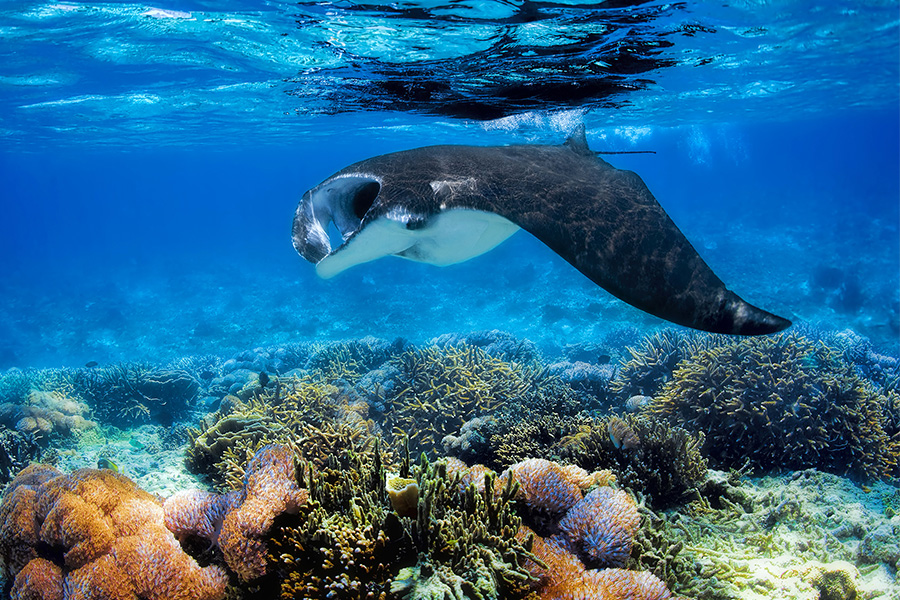 Der Indische Ozean begeistert mit einer beeindruckenden Artenvielfalt, in der besonders Mantas herausstechen. An den Strömungen der Malediven oder Seychellen gleiten die majestätischen Rochen elegant durch das Wasser. Auch Haie und Walhaie zählen zu den faszinierenden Begegnungen, die Taucher hier erwarten. Momente mit diesen Giganten unter Wasser vermitteln ein Gefühl von Freiheit und Anmut – ein Tauchgebiet, das unvergessliche Erlebnisse mit einigen der beeindruckendsten Meeresbewohner garantiert.