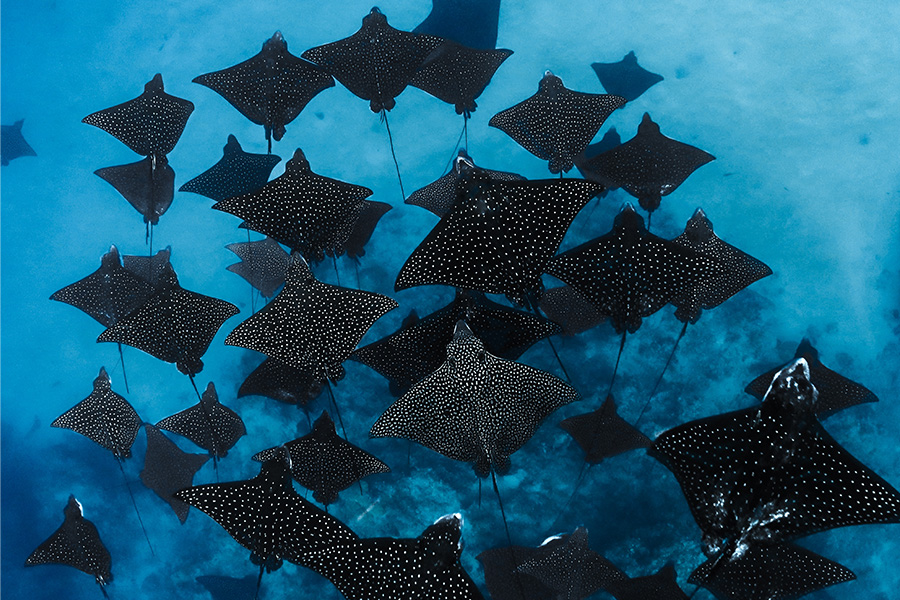 Ob Mantas, Adler- oder Stachelrochen – ihre flachen Körper und ausladenden Flossen machen jede Begegnung zu einem visuellen Highlight. Besonders in tropischen Riffen lassen sich die Tiere beim lautlosen Gleiten beobachten. Ein Moment unter Wasser, welcher für immer magisch in Erinnerung bleibt.