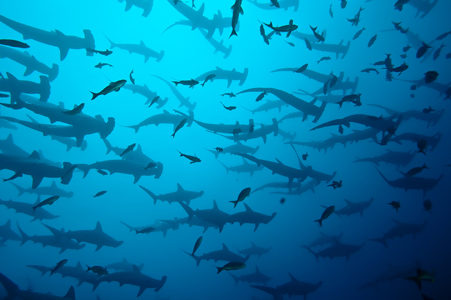 Mit ihrer abgeschiedenen Lage im Pazifik bieten die Galápagos-Inseln unvergleichliche Möglichkeiten für Grossfischbeobachtungen. Rund um Wolf und Darwin tummeln sich riesige Schulen von Hammerhaien, Mantas und Thunfischen. Begegnungen mit Walhaien sind hier keine Seltenheit und machen das Archipel zu einem Hotspot für Grossfischfans. Verspielt und neugierig begleiten auch Seehunde Tauchgänge und sorgen für unvergessliche Momente. Ein Reiseziel, das wie kein anderes für Vielfalt und Intensität steht.
