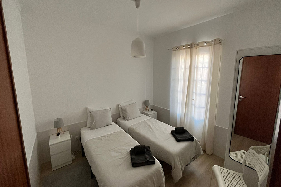 Das doppelstöckige Gästehaus hat vier Zimmer, ausgestattet mit zwei einzelnen Betten. Es hat zwei Badezimmer, die mit den anderen Gästen geteilt werden.