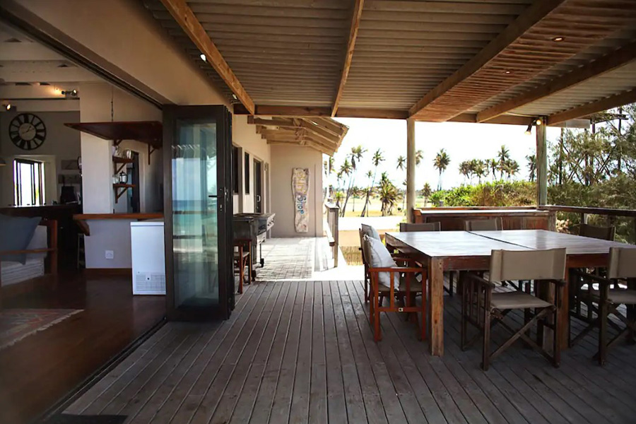 Das Herzstück des Guest Houses ist die grosse Veranda mit fantastischem Blick auf den Strand und den Ozean. Zur Verfügung stehen ein Pool, eine Lounge, ein Grill und eine weitere Terrasse im Obergeschoss. Im Haus hat es eine voll ausgestattete Küche mit Kühlschrank und ein offenes Wohnzimmer. Auf Wunsch kann ein Koch organisiert werden, welcher lokale und einheimische Speisen zaubert. Frühstück wird in der Tauchbasis Tofo Scuba serviert.