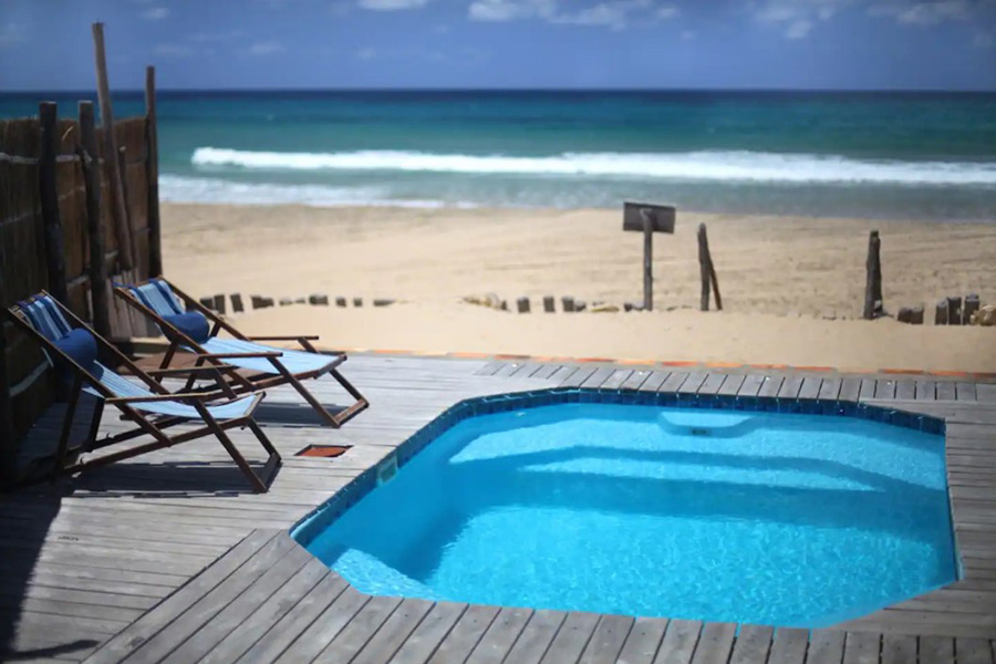 Das stylische Guesthouse liegt direkt am Strand und gleich neben der Tauchbasis von Tofo Scuba. In nur zehn Gehminuten erreicht man den lokalen Markt und das Zentrum Tofos. In umliegender Nähe gibt es zudem verschiedene Strandrestaurants und Verpflegungsmöglichkeiten. Der Transfer vom Flughafen Inhambane dauert etwa 20 Minuten per Auto.