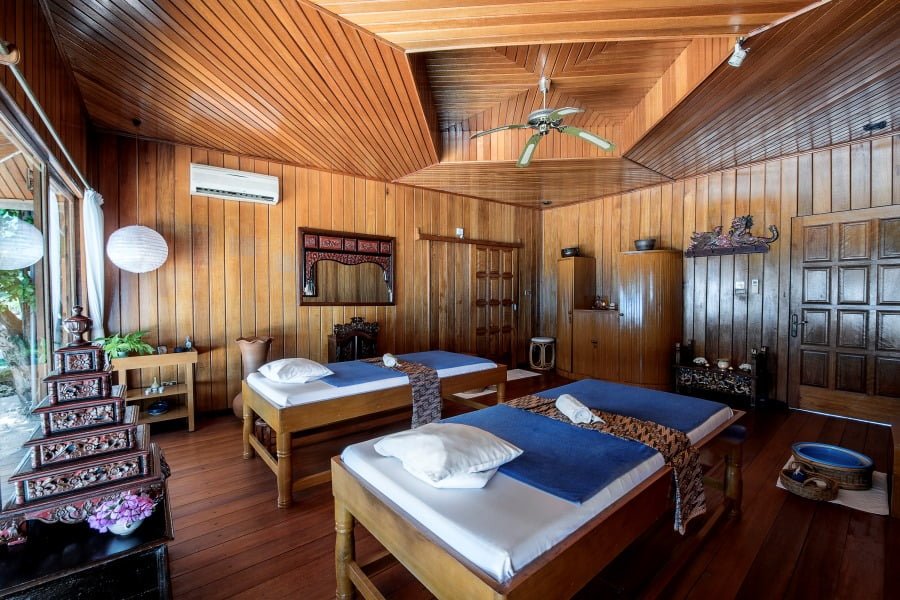 In dem grosszügigen Hauptgebäude befindet sich das Hauptrestaurant. Hier werden die mediterranen und indonesischen Gerichte serviert, welche aus frischen Produkten zubereitet werden. Das Frühstück gibt es als Buffet, je nach Auslastung werden Mittag- und Abendessen als Vier-Gänge Menü (kleine täglich wechselnde Speisekarte) oder ebenfalls in Buffetform angeboten. Zusätzlich gibt es das Outdoor Bamboo Restaurant, in dem zwei Mal pro Woche ein Fisch-BBQ, begleitet von lokalen Musikern, stattfindet.