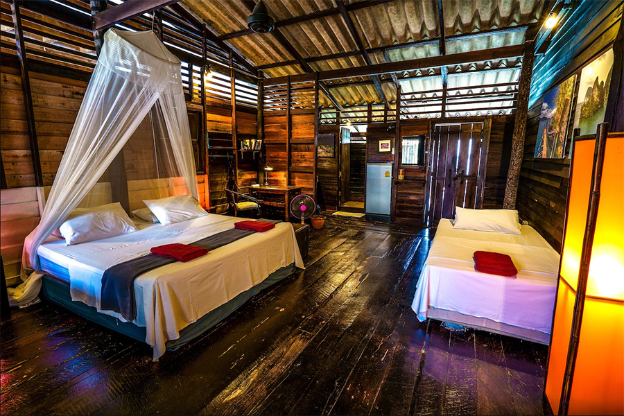 Die einfachen Mango Houses liegen zentral in der Altatadt von Lanta, sind auf Holzstelzen direkt am Meer gebaut und erinnern an traditionelle Häuser aus China. Die Zimmer sind in drei verschiedene Kategorien unterteilt. Die Family Villa bietet Platz für 6 Personen, die drei Sea Front Suiten können bis zu 4 Personen beherbergen und die einfachen Mango Rooms sind mit einem Doppelbett eingerichtet. Alle Zimmer sind mit Terrasse/Balkon, Bad/Dusche mit warmen Süsswasser und WiFi ausgestattet. Die Villa und Suiten verfügen zusätzlich über eine Küche.