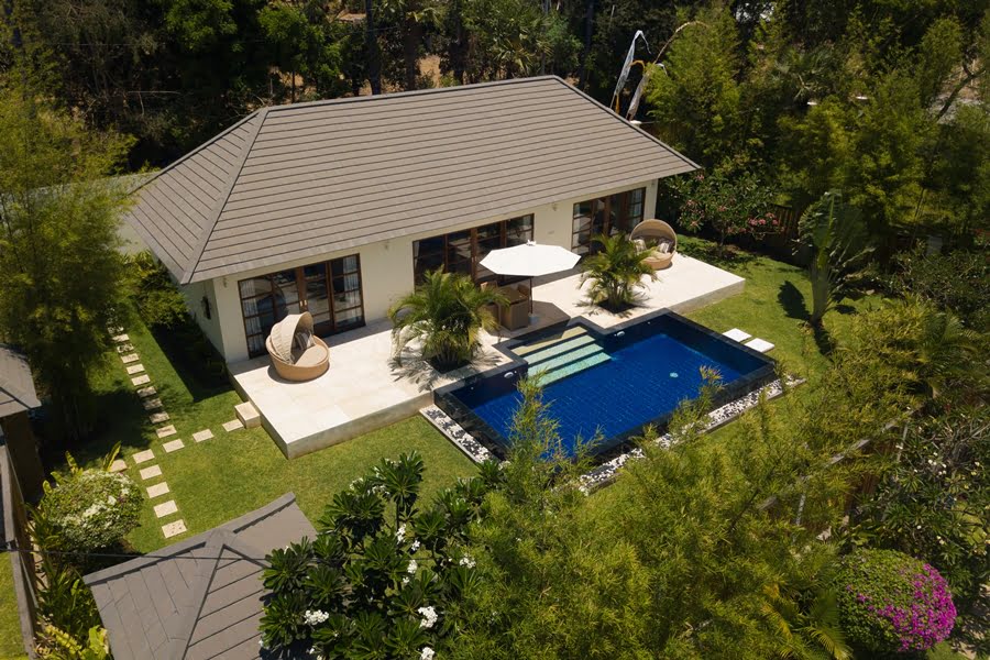 Die modernen Garden View Villen verfügen über zwei separate Schlafzimmer mit je einem eigenen Bad/WC sowie ein Wohn- und Essbereich, Küche und eine grosse Terrasse. Zusätzlich befindet sich im privaten Garten mit Lazybed und Vulkanblick auch ein eigener Pool.