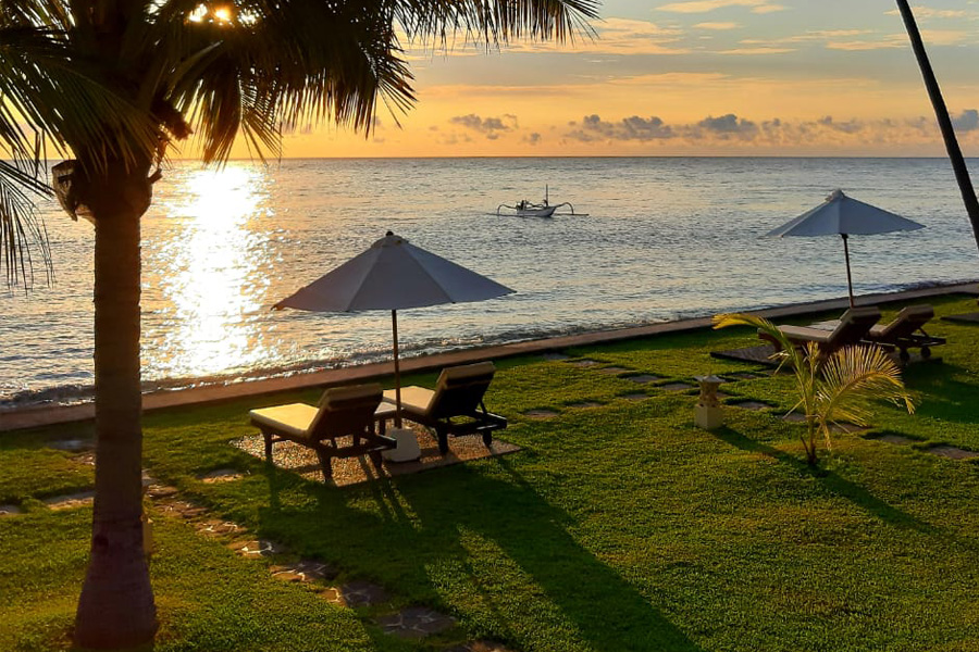 Das Kubu Indah Resort befindet sich in dem kleinen Örtchen Kubu an der Nordostküste Balis. Das Resort liegt inmitten eines tropischen Gartens direkt am Meer. Der Transfer vom Flughafen Denpasar dauert per Auto etwa zweieinhalb bis drei Stunden.