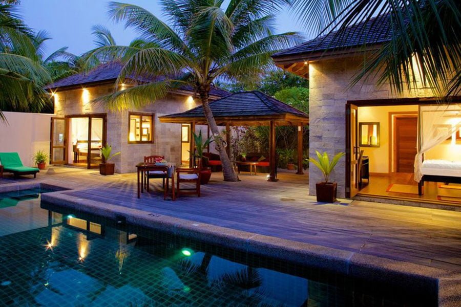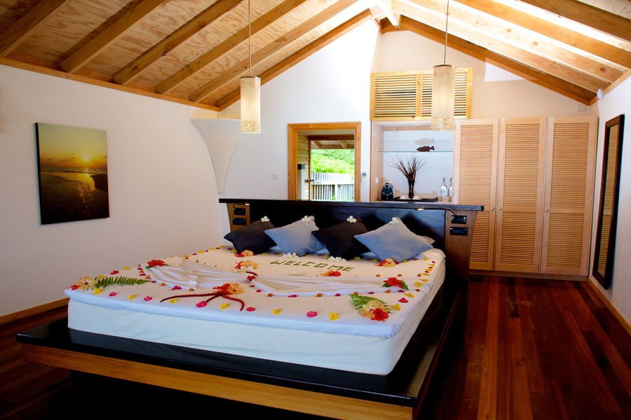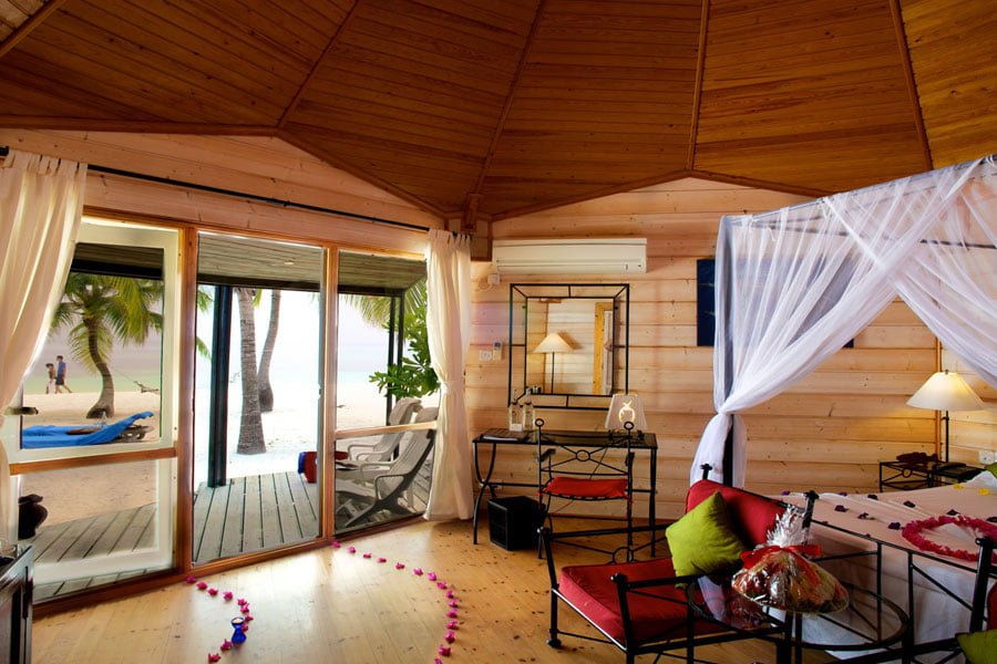 Die Jacuzzi Beach Villen befinden sich ebenfalls an der Südseite und haben zusätzlich einen Jacuzzui. Die O Jacuzzi Beach Villen sind auf der Nordostseite gelegen. Die Sangu Water Villen und die Honeymoon Suite befinden sich auf Stelzen gebaut in die Lagune. Die Sultan Pool Villen liegen im Inselinnern und biete mit einem grossen Garten und eigenem Pool viel Privatsphäre. Diese Zimmer sind nur für Erwachsene buchbar.
