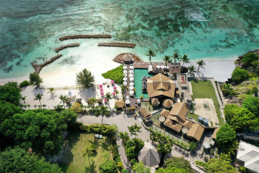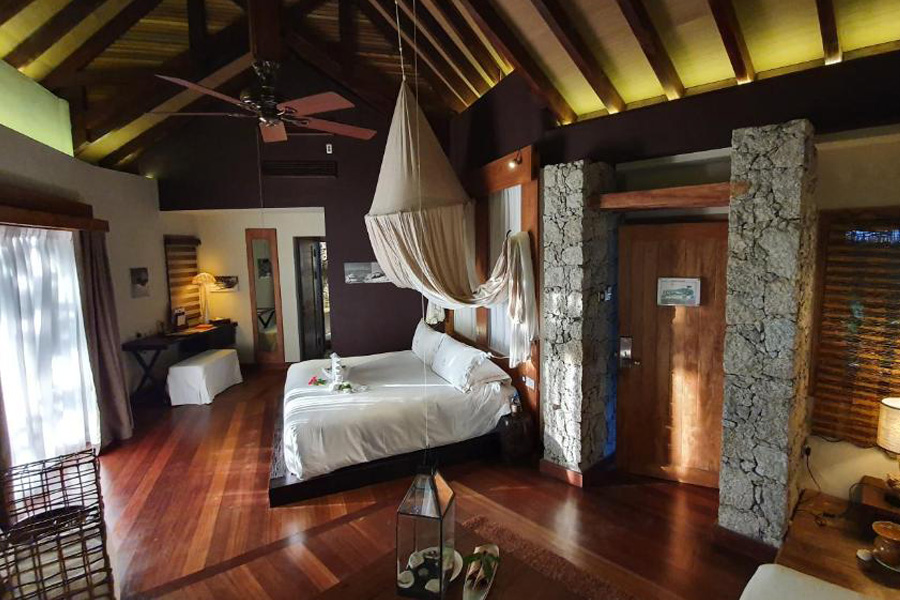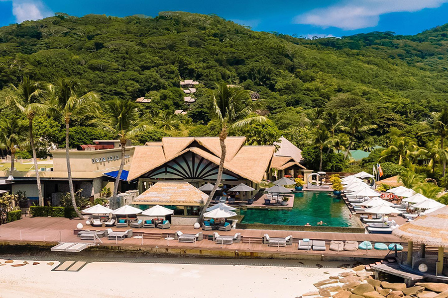 Zur Anlage gehören eine Reception, zwei Restaurants, zwei Bars, ein Pool, ein Spa und eine Boutique. Das Frühstück wird im Hauptrestaurant «Santosha» eingenommen, welches direkt am Meer liegt. Das Restaurant serviert internationale Küche mit kreolischen und asiatischen Akzenten. Das exquisite Restaurant «Combava» auf der Terrasse des Poolbereichs serviert mittags und abends ausschliesslich frische und gesunde Köstlichkeiten à la Carte. Die Pool-Bar lädt tagsüber zu kleinen Snacks und abends zu eleganten Cocktails während einem unvergesslichen Sonnenuntergang ein. Fahrräder können vor Ort gemietet werden. Zur Tauchbasis Trek Divers sind es 5 Minuten zu Fuss.
