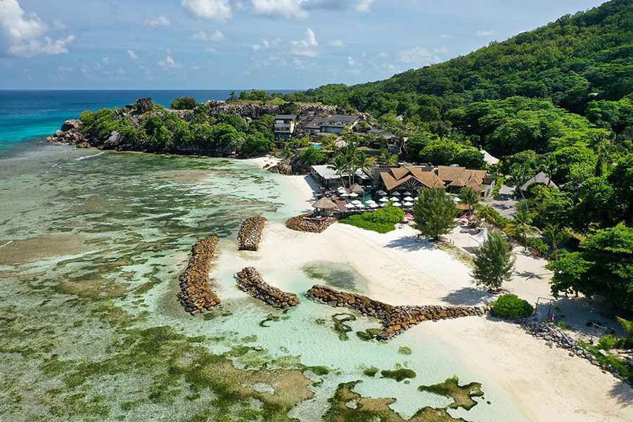 Dieses gehobenere Bijou liegt nur wenige Fahrradminuten von der Bootsanlegestelle entfernt und spricht für eine gute Ausgangslage, um die Insel zu entdecken. La Digue ist nur mit der Fähre zu erreichen, es gibt keinen Flughafen. Auf La Digue gibt es nur wenige Autos, das Hauptverkehrsmittel ist hier das Fahrrad. Die Anreise von Mahé erfolgt mit dem Flugzeug (etwa 20 Minuten) oder mit der Schnellfähre (etwa 45 Minuten) nach Praslin und dann weiter mit der Fähre nach La Digue (etwa 30 Minuten).