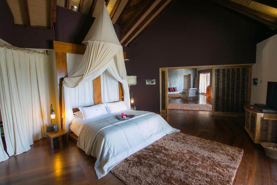 Erhöht mit atemberaubendem Blick über die tropische Umgebung liegen die 31 Villa de Charme, die 3 Villa de Charme Élégance und die Präsidenten Villa. Diese luxuriösen Villen verfügen zusätzlich über ein offenes Badezimmer, Minibar und TV mit Flachbildschirm. Die Villa de Charme Élégance bietet mehr Privatsphäre und einen Whirlpool. Die Präsidenten Villa hat einen eigenen Pool und Butler Service.