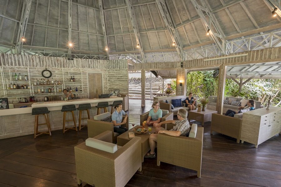 Im Hauptgebäude befinden sich ebenerdig die Rezeption und ein kleiner Shop. Im zweiten Stock befindet sich das Restaurant mit Aussenterrasse. Hier werden köstliche indonesische und westliche Gerichte aus frischen und lokalen Zutaten serviert. Das Frühstück und Mittagessen wird in Buffetform bereitgestellt, das Abendessen ist à la Carte. Zusätzlich werden auch BBQ-Abende veranstaltet. Die Anlage bietet zudem ein Pool mit Liegestühlen, einen Spa und eine Bibliothek. Vor dem Resort ist ein kleiner, eigener Kieselstrand, der als Hafen genutzt wird. Vom Hotel aus werden verschiedene Landausflüge organisiert.