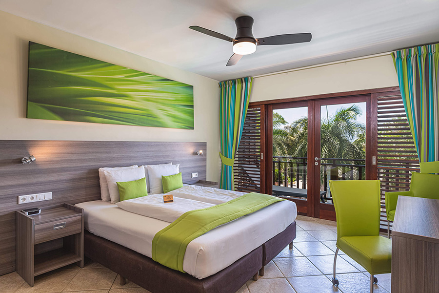 Die Resort View Zimmer (auch Run of the House genannt) bieten Sicht auf Garten, Pool oder Parkplatz. Die Ocean View Zimmer liegen etwas zurückversetzt vom Strand und bieten Meersicht. Die Ocean Front Cabana Zimmer liegen direkt am Strand. Die 24 luxuriösen Lions Apartments mit Blick auf den Pool sind mit zwei Schlafzimmern und zwei Bäder ausgestattet. Sie verfügen zusätzlich über ein Wohnzimmer mit Sofa-Bett und eine voll ausgestatteten Küche. Die Apartments bieten Platz für maximal sechs Personen.