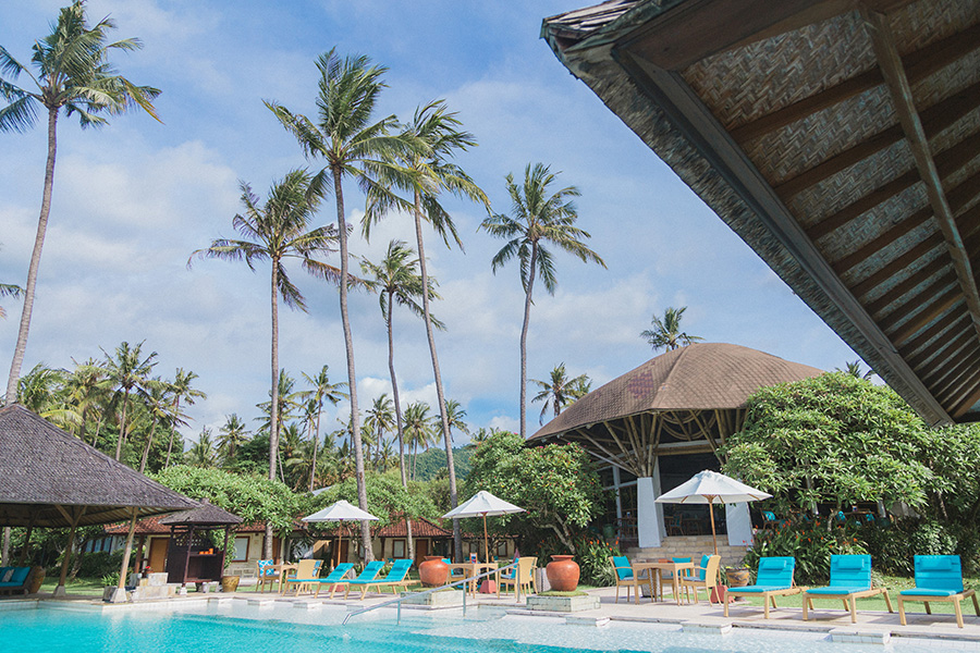 Die kleine Hotelanlage befindet sich an der Südküste Balis im kleinen Ort Candidasa. Das Hotel liegt direkt am Meer, vorgelagerten befindet sich die Inseln Nusa Penida und Nusa Lembongan. Der Transfer vom Flughafen Denpasar dauert per Auto etwa eineinhalb bis zwei Stunden.