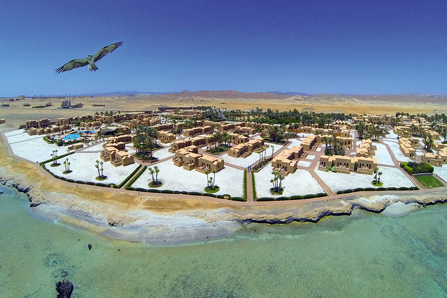 Die sehr schöne 5*-Anlage im nubischen Baustil befindet sich in der Nähe von El Quseir. Das Resort liegt in der El-Quadim-Bucht direkt an einem breiten, flach abfallenden Sandstrand. Marsa Alam ist 87 Kilometer vom Resort entfernt. Der Transfer vom Flughafen Marsa Alam dauert etwa 50 Minuten, vom Flughafen Hurghada dauert es ca. 1 Stunde und 30 Minuten bis zum Hotel.