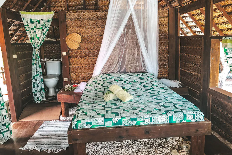Die acht Bungalows und zwei Suiten sind im polynesischen Stil erbaut und eingerichtet. Ausgestattet sind sie mit Moskitonetzen, Deckenventilatoren, einem einfachen offenen Bad. Die Bungalows und Suiten unterschieden sich nur in der grösse und der Anzahl Personen die Platz finden.