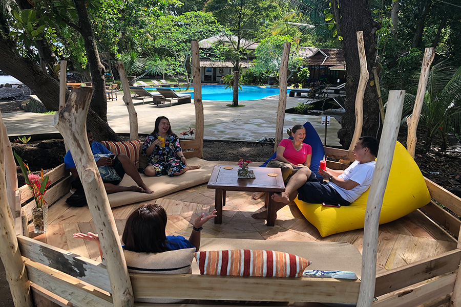 Das Restaurant befindet sich direkt am Strand. Das abendliche Büffet bietet neben frischem Fisch auch eine Auswahl an Fleischgerichten, es werden hauptsächlich leckere, einheimische Gerichte serviert. Zwischen dem Restaurant und dem Pool liegt die neu erbaute Bar und Lounge. Vom Pool aus hat man eine schöne Sicht auf das Meer und den Vulkan Manado Tua. Zudem gibt es einen kleinen Spa.