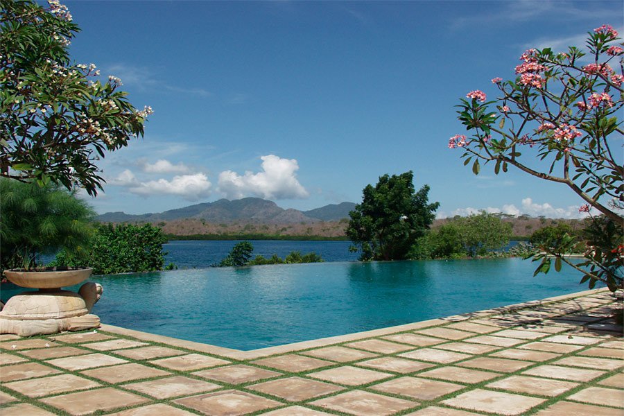 Im tropischen und traumhaft angelegten Garten gibt es einen Pool, welcher von einer Thermalquelle beheizt wird. Das halboffene Restaurant mit seiner grossen Terrasse bietet einen schönen Blick über die Bucht. Die Bar ist bekannt für ihre vorzüglichen Cocktails. Zudem gibt es einen Aufenthaltsraum mit Billard, Schach und einer kleinen Bibliothek sowie ein Spa.
