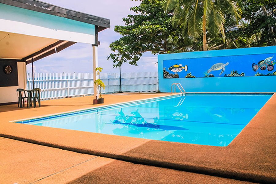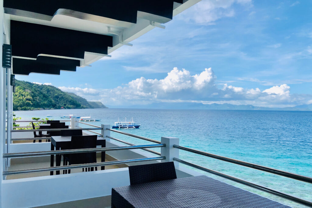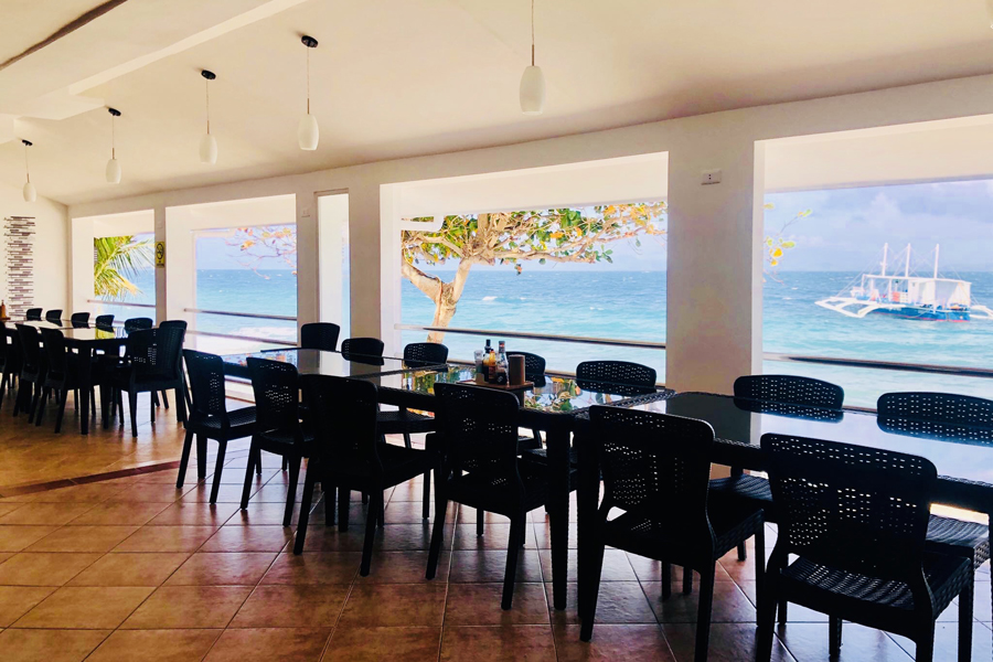 Ein klimatisiertes Restaurant und ein Restaurant am Pool mit Meerblick ist vorhanden, angeboten werden philippinische und internationale Gerichte. Der Abend kann gemütlich an der Bar verbracht werden. In der Anlage ist ein Pool der auch für Tauchkurse genutzt wird, hier gibt es auch eine Tischtennisplatte und ein Dartboard. Im Restaurant und an der Bar steht den Gästen kostenlos WiFi zur Verfügung, es gibt einen Fernseher, eine kleine Bücherei und einen kleinen Souvenirshop. An der Rezeption können die Gäste Massagen buchen oder sich Motorräder für Tagesausflüge mieten.