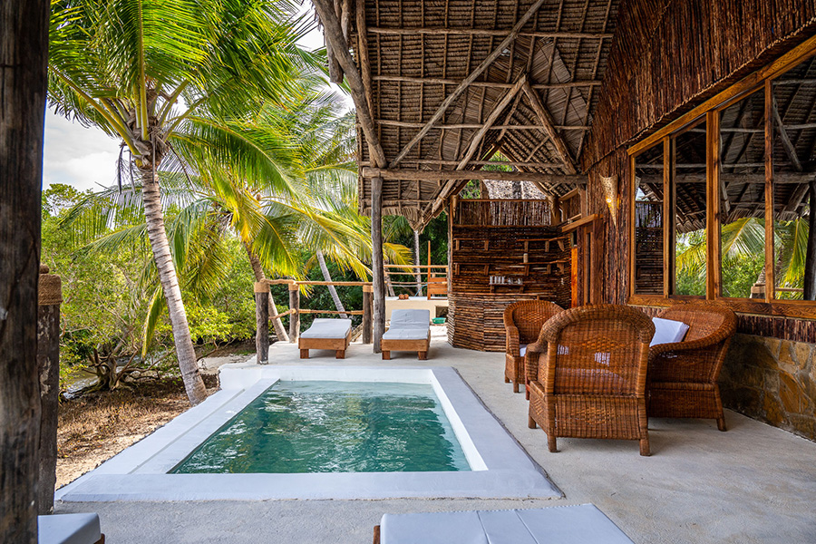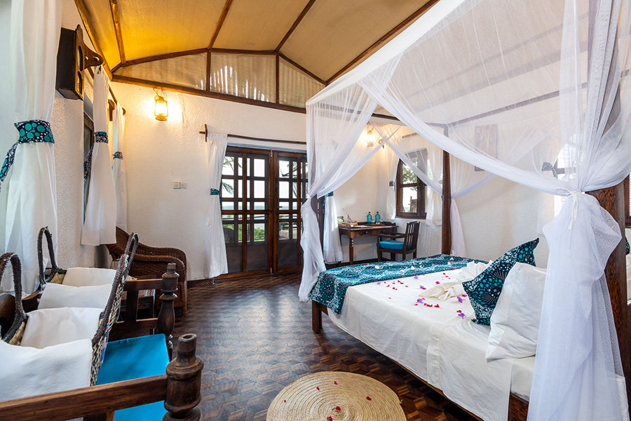 Das Resort bietet 12 Wohneinheiten in fünf Kategorien, welche im lokalen afrikanisch-arabischen Stil gebaut sind. Sie sind ausgestattet mit Klimaanlage, Deckenventilator, WIFI, grossem Baderaum und Terrasse mit Sitzgelegenheiten. Die fünf Bahari Bungalows bieten eine tolle Aussicht auf die Chloe Bay und sind umgeben von Kokospalmen. Die zwei Asali Family Bungalows sind grösser und verfügen über ein Massagebett in einem separaten Raum. Sie sind speziell für Familien geeignet, da der zusätzliche Raum als zweites Schlafzimmer genutzt werden kann. Die drei Jua Seaview Suiten verfügen über einen privaten Pool auf der Terrasse und beherbergen max. drei Gäste.