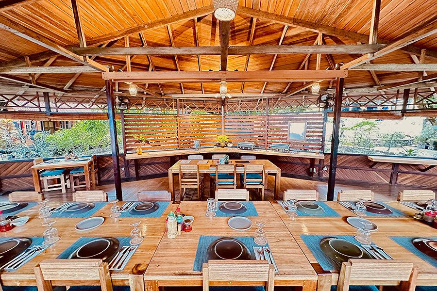 Das Resort bietet ein offenes Restaurant mit regionaler und internationaler Küche. Ausserdem gibt es einen grossen Gemeinschaftsraum mit Billardtisch, Dartscheibe, verschiedenen Sitzmöglichkeiten und Tischen.