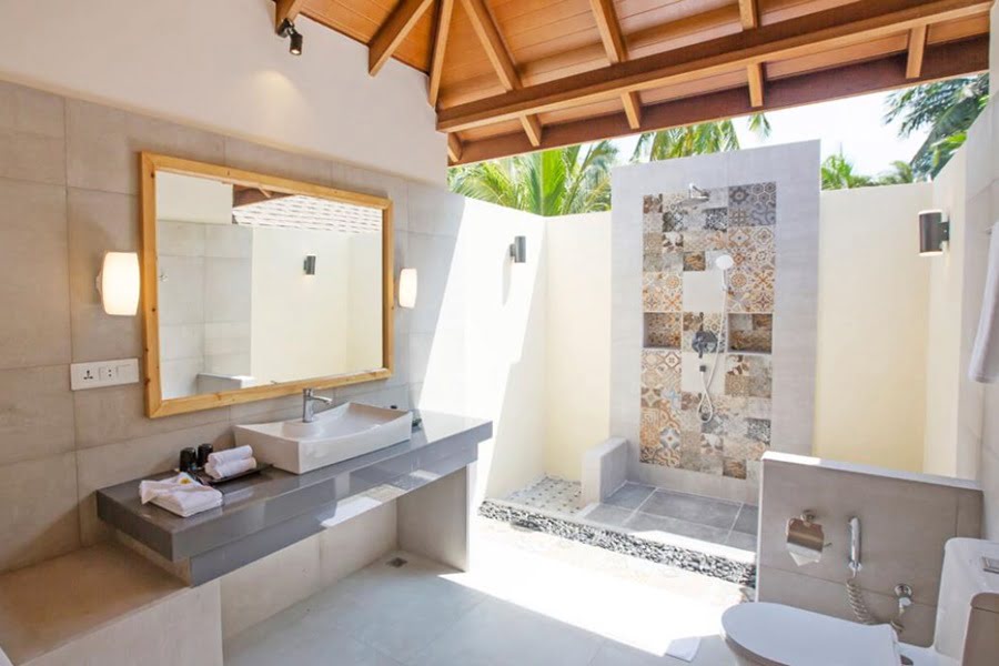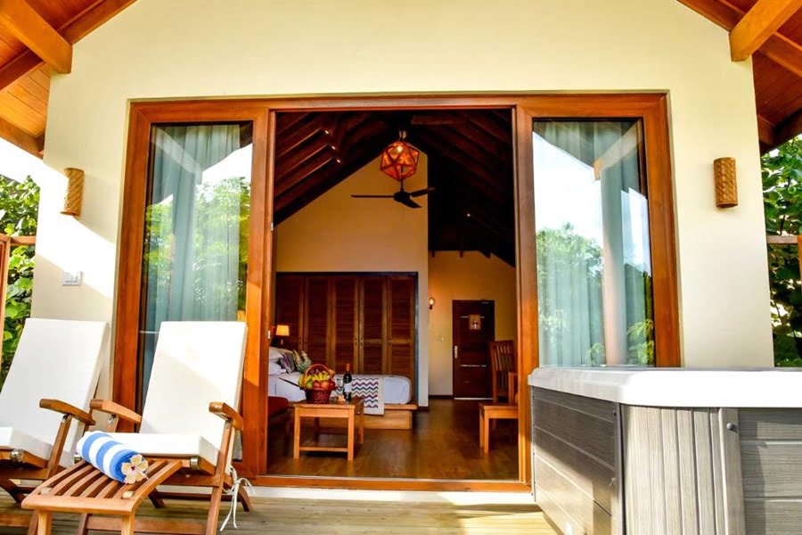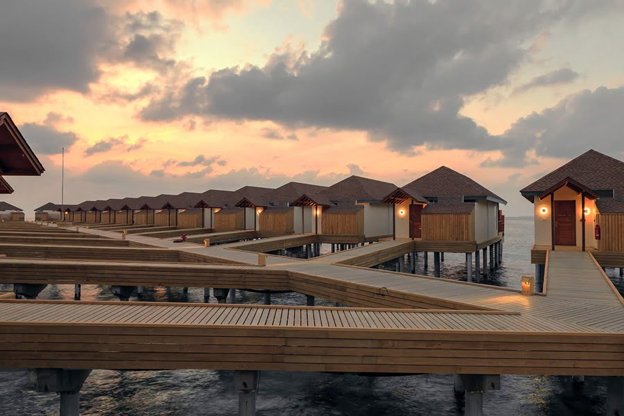 Die Wasser Villen sind geräumig und modern eingerichtet und bieten eine angenehme Privatsphäre. Von der privaten Terrasse aus hat man einen direkten Zugang zum Meer, eine Sonnen Lounge und ein überdachten Teil, mit wunderschönem Blick auf das Meer.