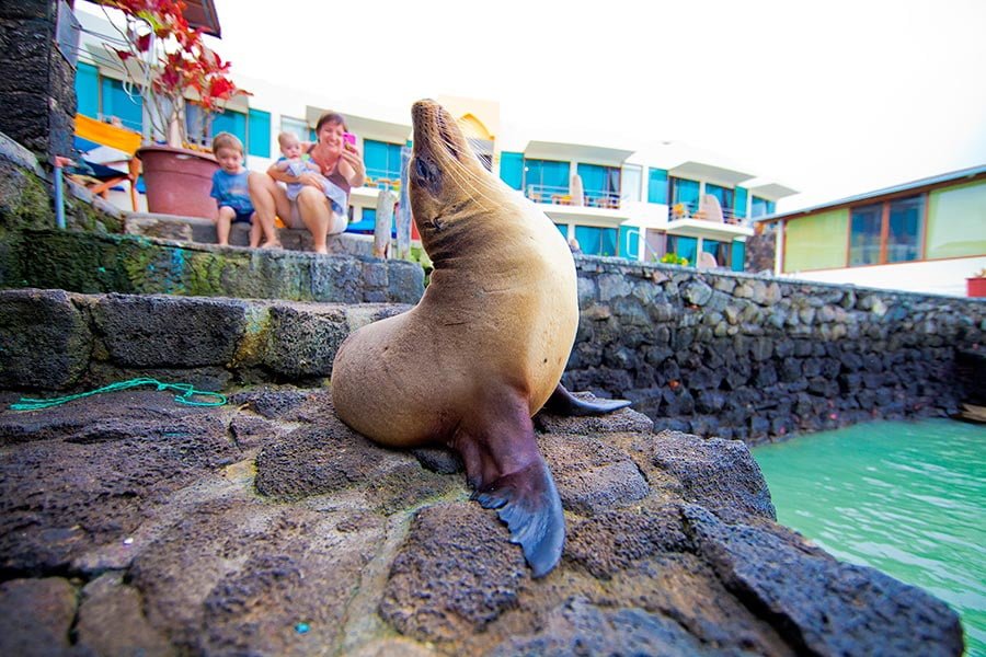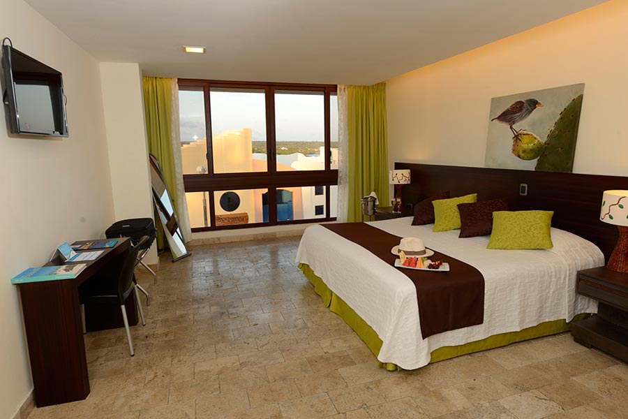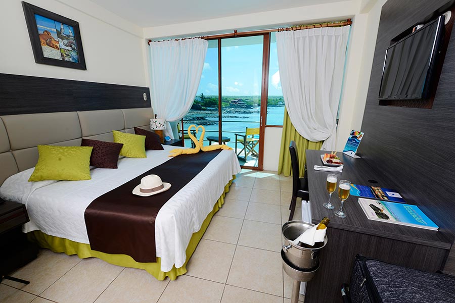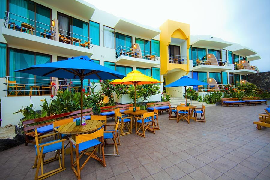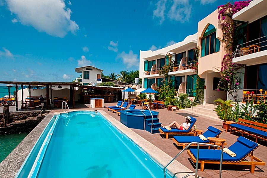 In dem eigenen Restaurant mit Blick auf die Bucht werden Frühstücksbuffet und Abendessen serviert. Es gibt eine eigene Bar und einen schönen Swimmingpool direkt am Meer, von wo aus Pelikane, Leguane und Seelöwen beobachtet werden können. Tagesausflüge können vom Hotel aus organisiert werden (wir empfehlen diese im Voraus zu buchen, da nur eine begrenzte Anzahl Touristen pro Tag auf die umliegenden Inseln gelassen werden).