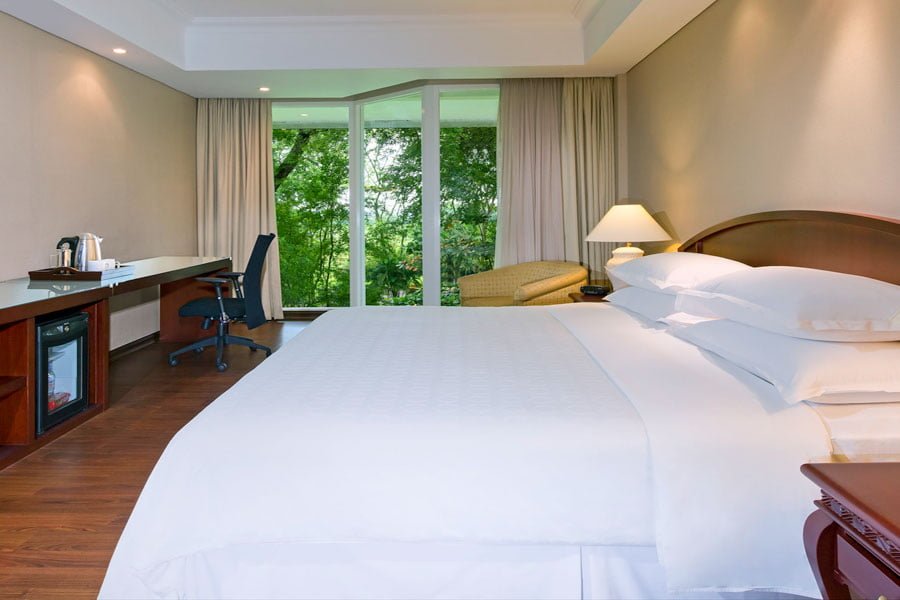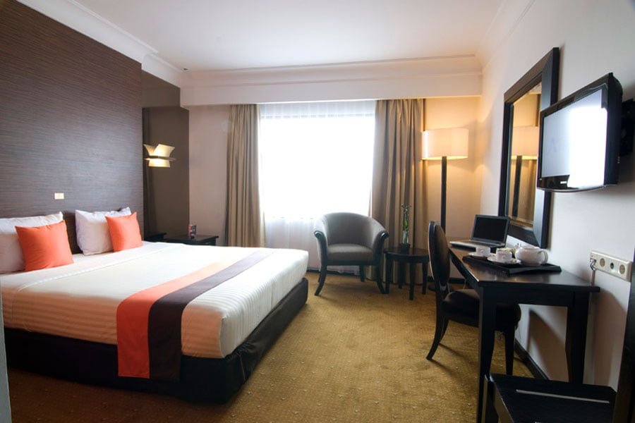 Das Hotel ist, je nach Verkehrslage, in etwa fünf Fahrminuten vom internationalen Flughafen Jakarta aus erreichbar. Die 225 Zimmer sind geräumig und klimatisiert und bieten Garten- oder Seeblick. Alle sind mit einem Flachbild-TV, einem eigenen Safe, einer Minibar und eigenem Bad ausgestattet. Das Hotel bietet zudem einen Pool, ein Spa, WLAN, vier Restaurants sowie eine Bar an.