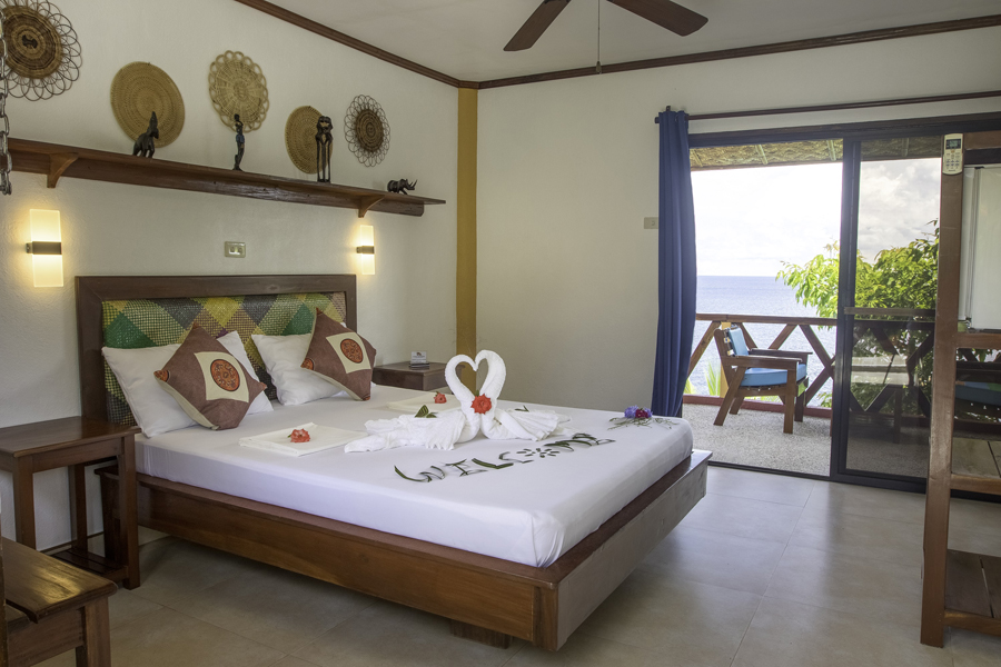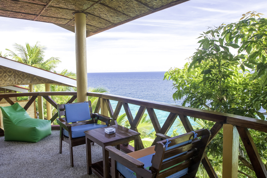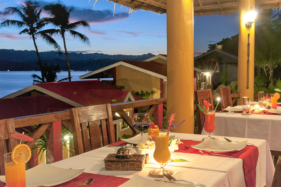Im Preis inklusive ist Vollpension mit einem reichhaltigen Frühstück (inkl. Kaffee, Tee, Milch, Säfte), zwei Gänge Mittagessen und ein drei Gänge Abendessen. Alle Gerichte werden täglich mit frischen Obst, Gemüse und Zutaten vom Markt, zubereitet. Die Terrassen-Bar bietet den ganzen Tag über alkoholfreie und alkoholische Getränke an. Das Resorts liegt auf einem Plateau. Es gibt eine Treppe, die vom Tauchshop direkt zum Meer führt. Neben dem Tauchen bietet das Resort verschiedenen Aktivitäten wie Trekkingtouren oder Bootsfahrten an.