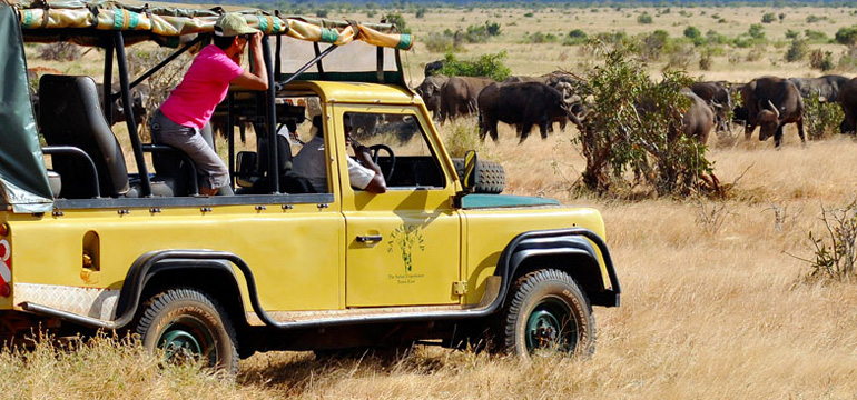 Am Morgen geht es vom Temple Point Resort aus zum Tsavo East National Park via Sala Gate. Am nächsten Tag geht es in den Tsavo West Nationalpark und am letzten Tag geht es nach der Pirschfahrt zurück in den Tsavo East National Park. Auf den ganztägigen Pirschfahrt beseht die Möglichkeit Elefanten, Giraffen, Löwen. Zebras, Büffel, Gazellen und viele weitere Tiere zu sehen. Eines der Ziele ist der Aruba Dam, ein Wasserloch, bei welchem sich sehr viele Tiere tummeln. Am letzten Tag gibt es vor dem Frühstück eine «Early-Morning» Pirschfahrt im Park, bevor es zurück ins Temple Point Resort oder an den Flughafen geht. Übernachtet wird in der Ashnil Aruba Lodge, Kilaguni Serena Lodge und im Satao Camp.