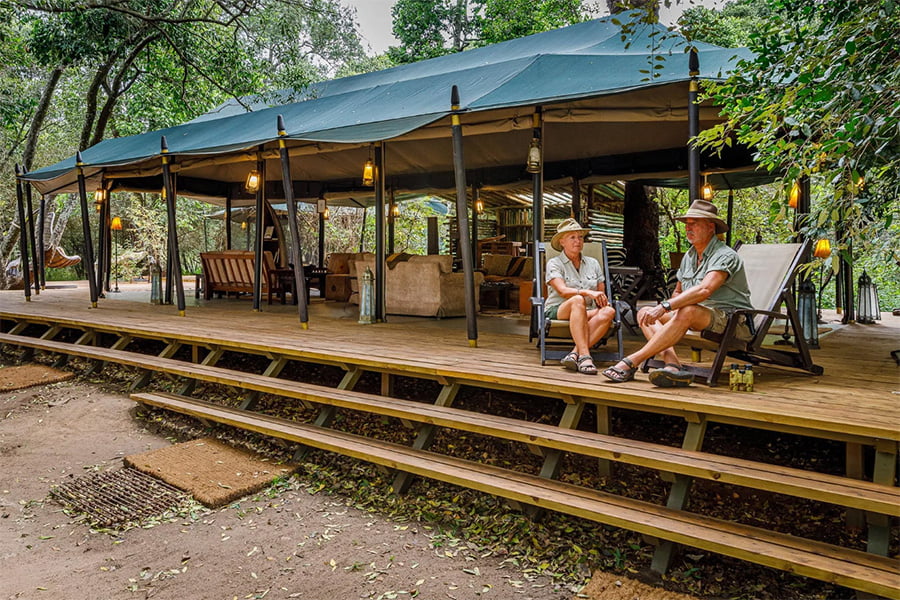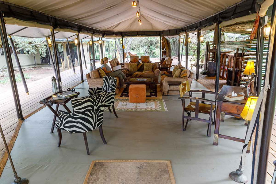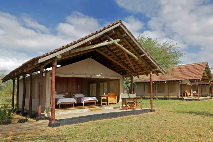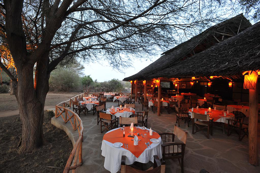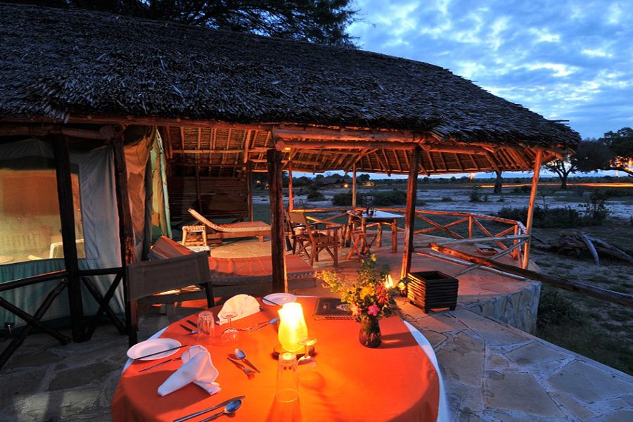 Das luxuriöseste Camp dieses Gebietes, das Satao Camp, befindet sich beim Voi River, rund 50 Kilometer vor den Parkgrenzen Tsavos. Mit Glück lassen sich bereits von hier aus einige Tiere beim Baden und Trinken beobachten. Übernachtet wird in 20 luxuriösen Zelten. Vier davon sind Suiten, die mehr Platz bieten und näher am Wasser liegen. Im Restaurant werden internationale Speisen serviert.