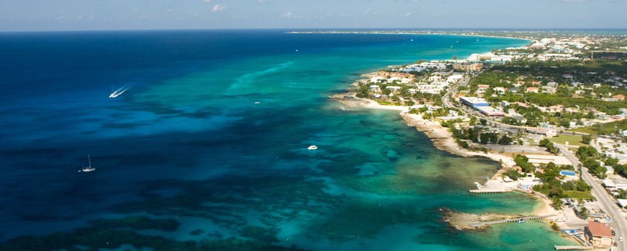 Die Cayman-Inselgruppe besteht aus den drei Inseln Grand Cayman, Little Cayman und Cayman Brac. Die Hauptstadt George Town mit dem internationalen Flughafen liegt auf Grand Cayman. Etwas nördlich der Hauptstadt befindet sich der Seven Mile Beach, am längsten Strand der Insel befinden sich viele grosse Hotels.