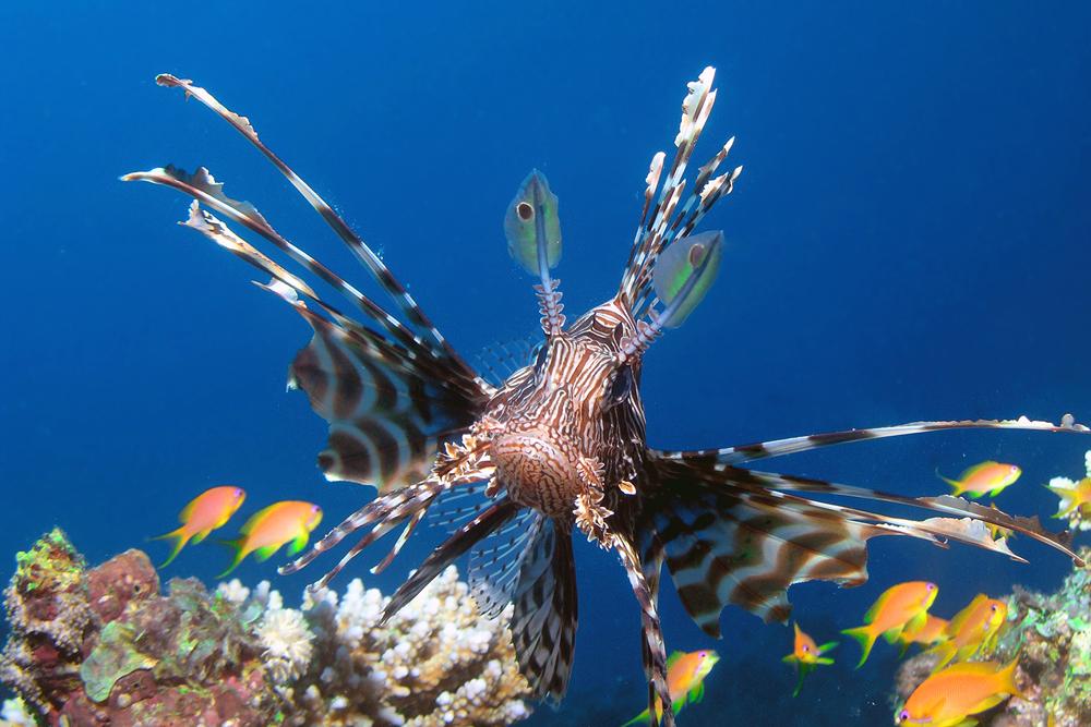 Am Morgen geht es auf eine Exkursion in die nähere Umgebung. Zurück im Resort sorgt ein gemeinsames Mittagessen für neue Energie, bevor das Hausriff erneut erkundet werden kann. Von bunten Korallengärten über Weich- und Hirnkorallen bis hin zu Gorgonian-Fächern – das Riff bietet eine faszinierende Unterwasserlandschaft. Die Artenvielfalt ist ebenso beeindruckend. Begegnungen mit Schildkröten, Muränen und tausenden von farbenfrohen Rifffischen gehören hier zum Alltag. Bei etwas Glück ziehen Haie, Delfine oder auch Adlerrochen vorbei während dem Tauchgang vorbei.