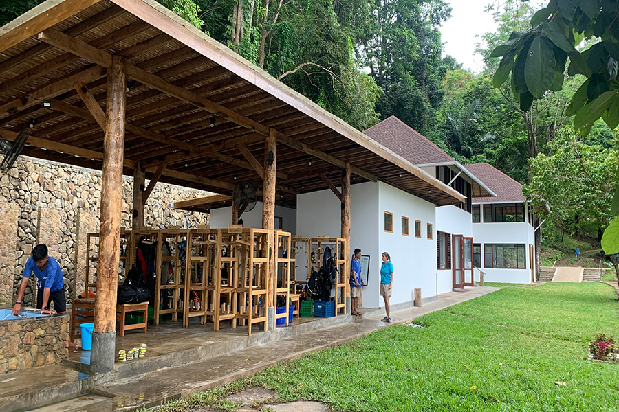 Täglich werden 3 Tauchgänge sowie auf Wunsch Nachttauchgänge angeboten. Getaucht wird entweder direkt im Hausriff oder per kurzer Bootsausfahrt zu den umliegenden Tauchplätzen. Von Manado aus sind die vorgelagerten Inseln des Bunaken Marineparks in etwa 30 Minuten mit dem Boot zu erreichen. Getaucht wird in kleinen Gruppen von maximal vier Personen begleitet von einem lokalen Tauchguide. Die Briefings sind meistens in Englisch. Das Hausriff wird beim ersten Tauchgang mit Guide getaucht, danach kann es eigenständig und kostenlos betaucht werden.