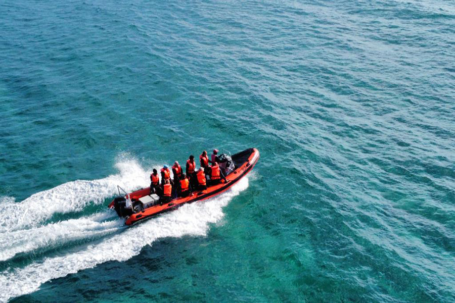 Beim Einsteigen in die Boote ist Muskelkraft gefragt. Die täglichen Ausfahrten erfolgen vom Strand aus, die Tauchgruppe schiebt die Boote ins Meer und springt auf, sobald die richtige Welle erwischt wurde. Danach erfolgt die Ausfahrt durch die Dünung, hierbei und bei der Auflandung direkt auf den Strand muss man sich gut festhalten, weil es etwas ruppig werden kann. Die Boote sind mit Fussriehmen ausgestattet, um Halt zu bieten. Einmal im Wasser sind die Strömungen nur selten stark.