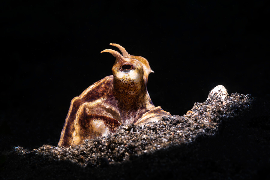In der Lembeh Strait (Wasserstrasse) befindet sich das weltweit wohl beste Tauchgebiet für Muck-Diving. Ein Paradies für Taucher die auf der Suche nach besonders kleinen und seltenen Fischen sind. Da gibt es den Ambon Skorpion Fisch, Geisterpfeifenfische, Seepferdchen, Zebrakrabben und Anglerfische in allen Farben , um nur einige der ansässigen Meeresbewohner zu nennen. Das Hausriff «Jahir 1» gehört zur Lembeh Strait und beheimatet einige der berüchtigten Citters wie der Hairy Frogfisch oder Mimik-Oktopus.