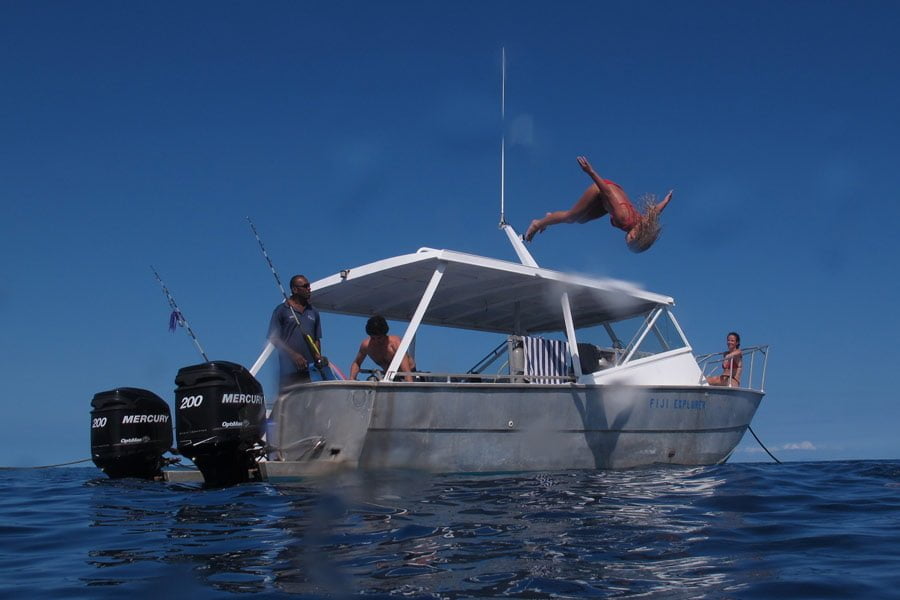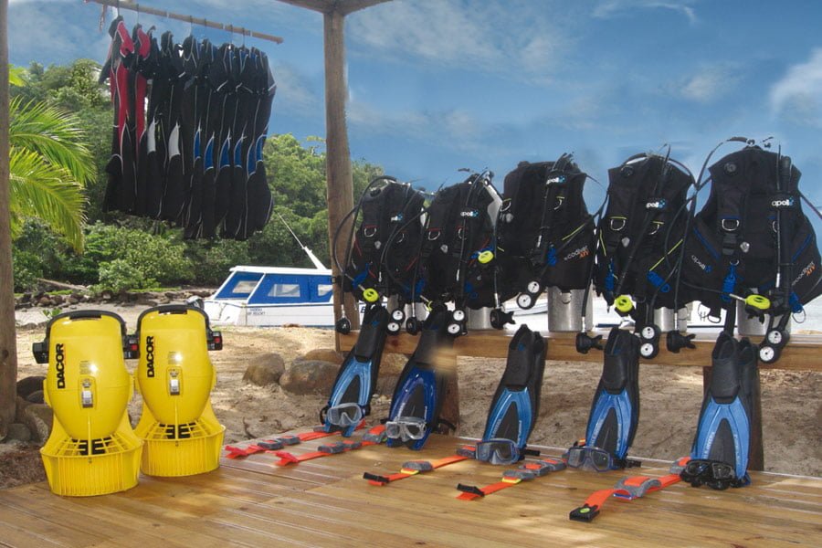 Die hauseigene Tauchbasis liegt in der Nähe der weltberühmten Beqa Lagoon wo sich eine erstaunliche Vielfalt von Riffen befindet. Tauchen an der Coral Coast bietet zum einen unerforschtes Tauchen und zum anderen viele weltberühmte Tauchplätze in und um die Beqa Lagoon. Die Basis verfügt über Leihausrüstung sowie 12 Liter Aluminumtauchflaschen mit DIN- und INT-Ventilen. Für die Tauchausfahrten stehen eigene Tauchboote zur Verfügung. Die Shark Dives werden zusammen mit anderen Tauchbasen durchgeführt. Nitrox ist nicht vorhanden.