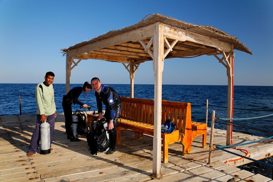 Es werden täglich 2-3 Tauchgänge angeboten. Die meisten Tauchausfahrten finden mit dem Jeep statt. Die Fahrzeit beträgt zwischen 5 und 60 Minuten. Regelmässig werden zusätzlich Ausfahrten mit dem Boot zu den verschiedenen Superriffen wie Elphinstone, Abu Dadab und Samadai Reef angeboten. Die Briefings sind in Deutsch oder Englisch.