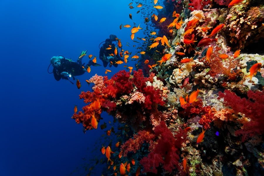 Die Wände des berühmten Elphinstone Riffs (Hochseeweißspitzenhaie), die tief ins Blaue fallen und üppig mit Weichkorallen, Schwämmen, Gorgonien und Farnen dekoriert sind, ziehen jeden in seinen Bann. Abu Dabab (Swim through’s und Höhlen) und Samadai Reef (große Delphin-Schulen) sind weitere Highlights.