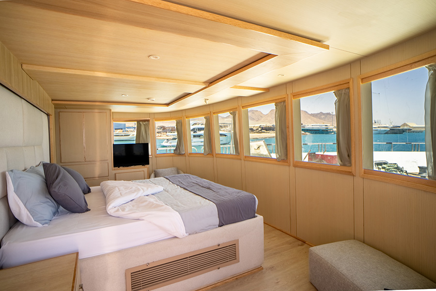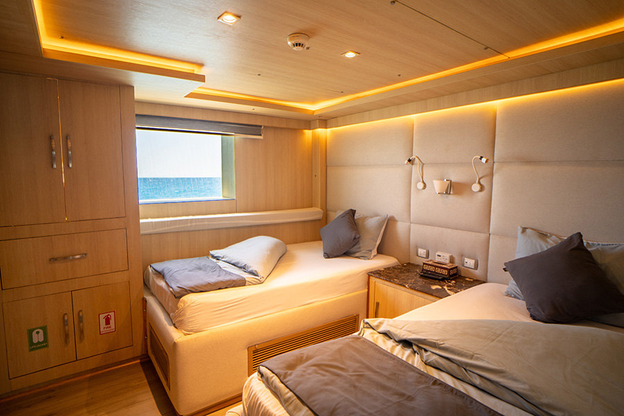 Die Lavender bietet insgesamt Platz in 14 Kabinen. Alle Kabinen verfügen über individuell regulierbare Klimaanlagen, Fenster/Bullauge und ein eigenes Bad/WC. Die Kabinen sind auf das Unterdeck, Hauptdeck und Oberdeck verteilt. Auf dem Oberdeck befinden sich zwei Kabinen mit Fenstern die jeweils ein Doppelbett haben. Auf dem Hauptdeck liegen die sechs Kabinen welche mit zwei Einzelbetten ausgestattet sind, welche zusammengeschoben werden können. Im Unterdeck liegen weitere sechs Kabinen je zwei Einzelbetten.