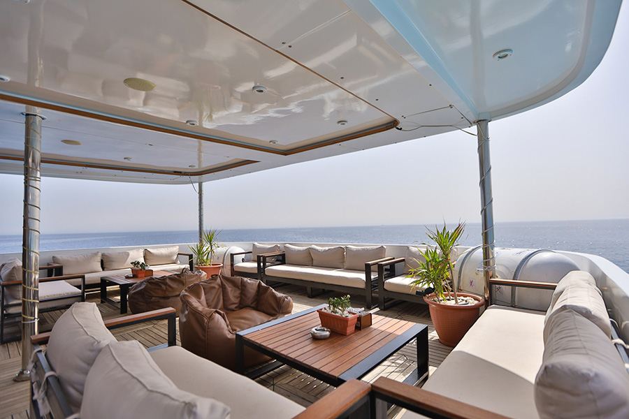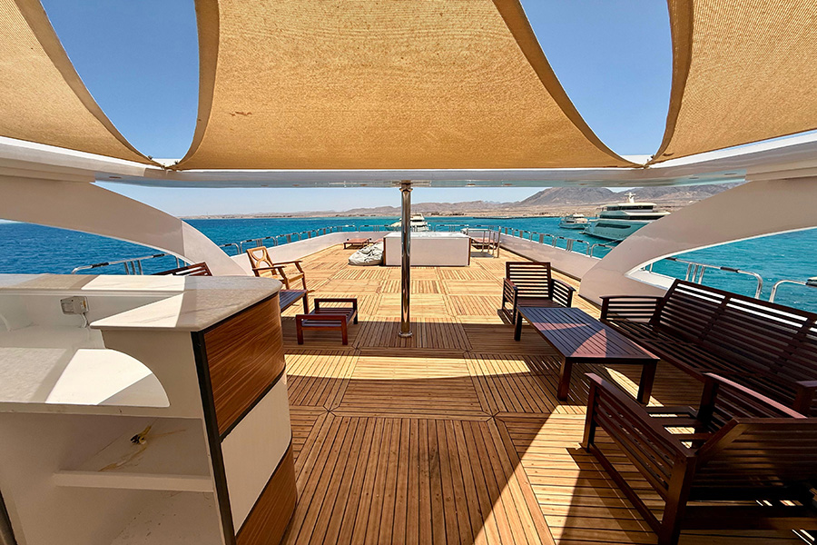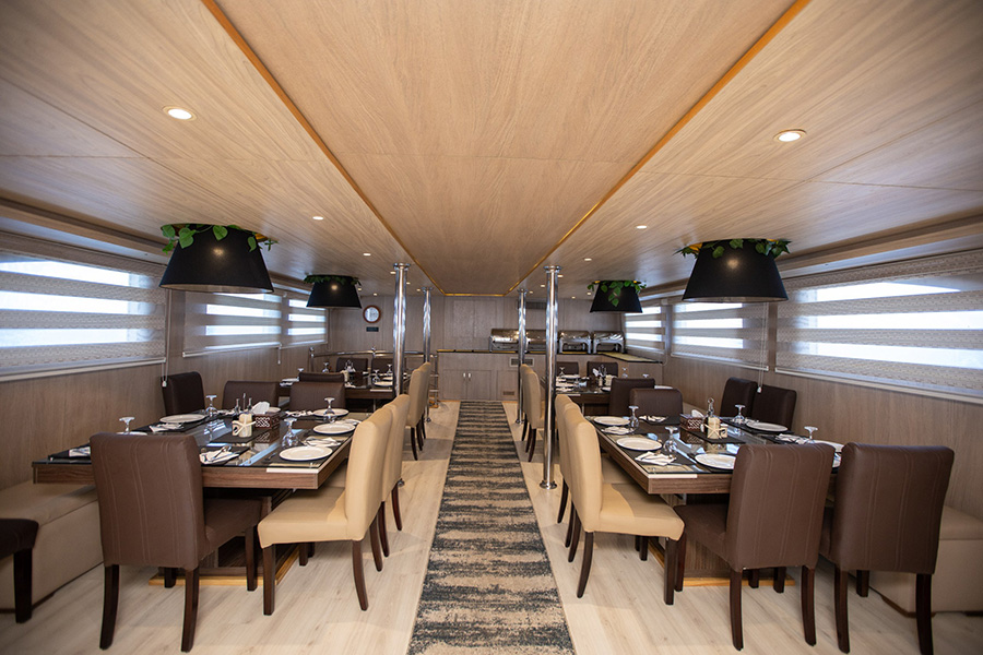 Der Salon liegt auf dem Hauptdeck und verfügt über eine Multimedia-Ecke mit TV/DVD . Das Restaurant befindet sich auf dem Oberdeck. Auf dem Sonnendeck gibt es zudem Liege- und Sitzmöglichkeiten sowie ein Jacuzzi.