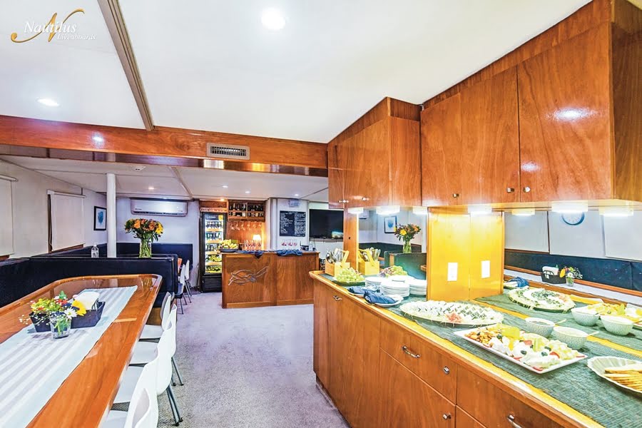 Auf dem Hauptdeck befindet sich ein Salon mit Bar sowie der Essbereich. Hier werden die internationalen und mexikanischen Mahlzeiten serviert. Zudem stehen den Gästen eine kleine Bibliothek sowie eine Multimedia-Ecke mit TV/DVD und Stereoanlage zur Verfügung. Auf dem Oberdeck gibt es sowohl sonnige wie auch schattige Plätze, eine Bar und ein Whirlpool. Das grosse Tauchdeck ist mit extra Kameratischen ausgestattet.