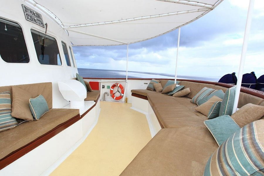 Der Salon verfügt über TV/DVD-Kombination und ist in Ess- und Aufenthaltsbereich mit einer kleinen Bücherei unterteilt. Die Sonnendecks bieten Sitz- und Liegemöglichkeiten. Die Pelagian verfügt zudem über ein geräumiges Tauchdeck mit eigenem Kameraraum.