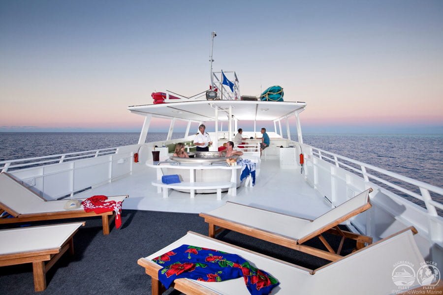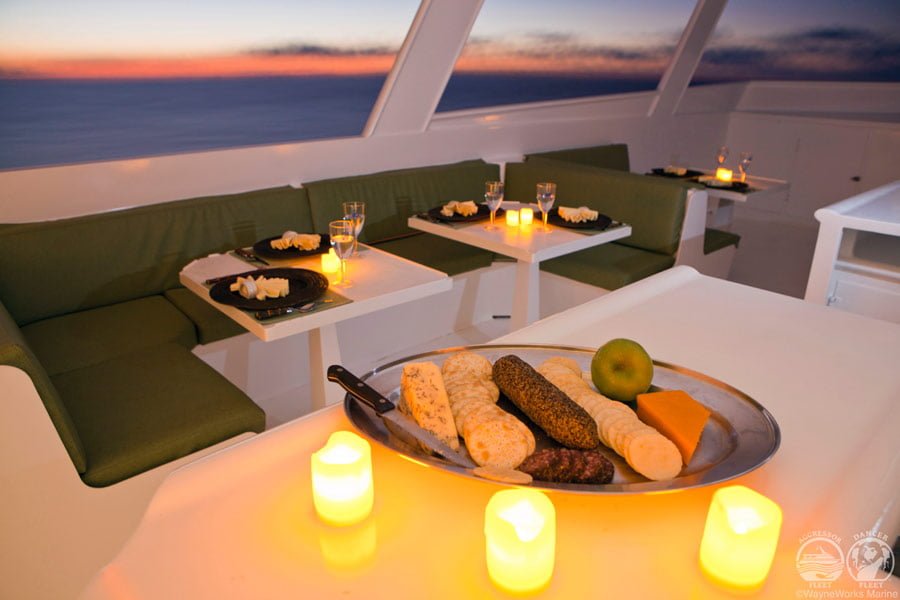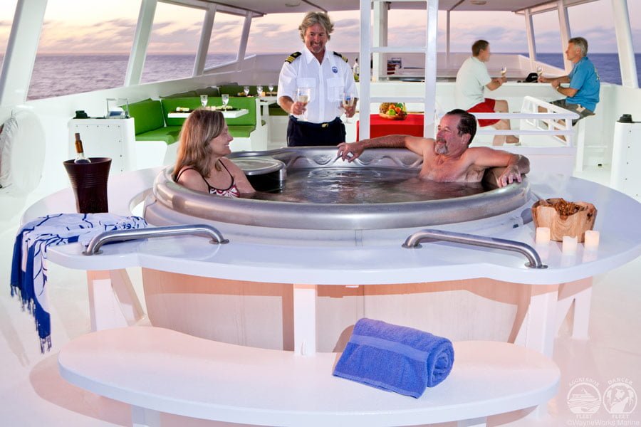Den Gästen stehen ein Salon mit TV/DVD-Kombination, Computer und CD-Player, ein Sonnendeck mit Whirlpool und ein grosses Tauchdeck mit grosser Tauchplattform zur Verfügung. Die internationalen Mahlzeiten werden in der Regel am Tisch serviert.