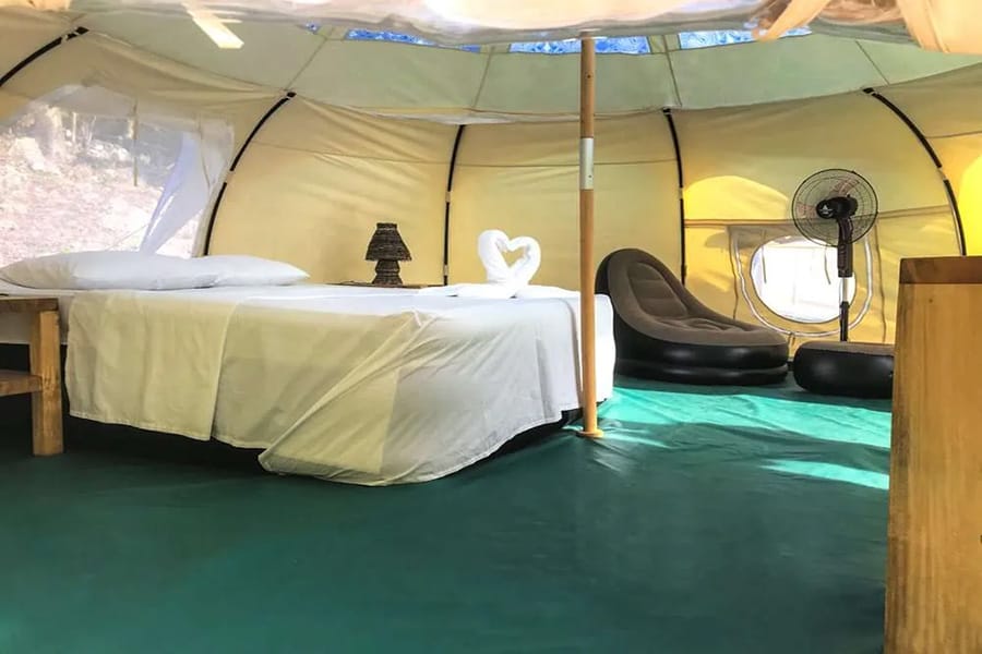 7 Nächte im Luxury Glamping Zelt, Basis Doppelzimmer, Vollpension, Privatflug Sipalay – Cagayan – Sipalay, bis zu 3 Tauchgänge an Tauchtagen mit Tank und Blei.